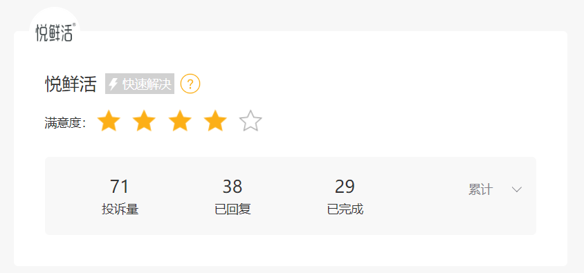然而,在市场拓展进程中,悦鲜活也面临着一些挑战。从黑猫投诉平台数据来看,截至目前,悦鲜活累计投诉量达 71 起,其中已回复 38 起,已完成 29 起。投诉内容涉及牛奶中有异物、牛奶变质、虚假宣传等。