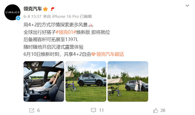 首页 > TMT 领克01 焕新版将于今日上市 发布时间: 2025-06-10 01:28:37 阅 98 6月9日,领克汽车官方宣布领克01 焕新版将于6月10日迎来正式上市。新车在外观上新增了夜影蓝车身,重点对内饰、车机系统进行了升级。动力方面,新车预计仍旧延续现款沃尔沃Drive E 2.0T T5+8AT的动力组合,最大功率187千瓦,峰值扭矩为350牛米。此外,领克 01 还有混动版本车型,满足不同消费者对动力和节能的需求,预计焕新版车型在动力上大概率会延续现有布局,或针对动力系统进行优化调校。