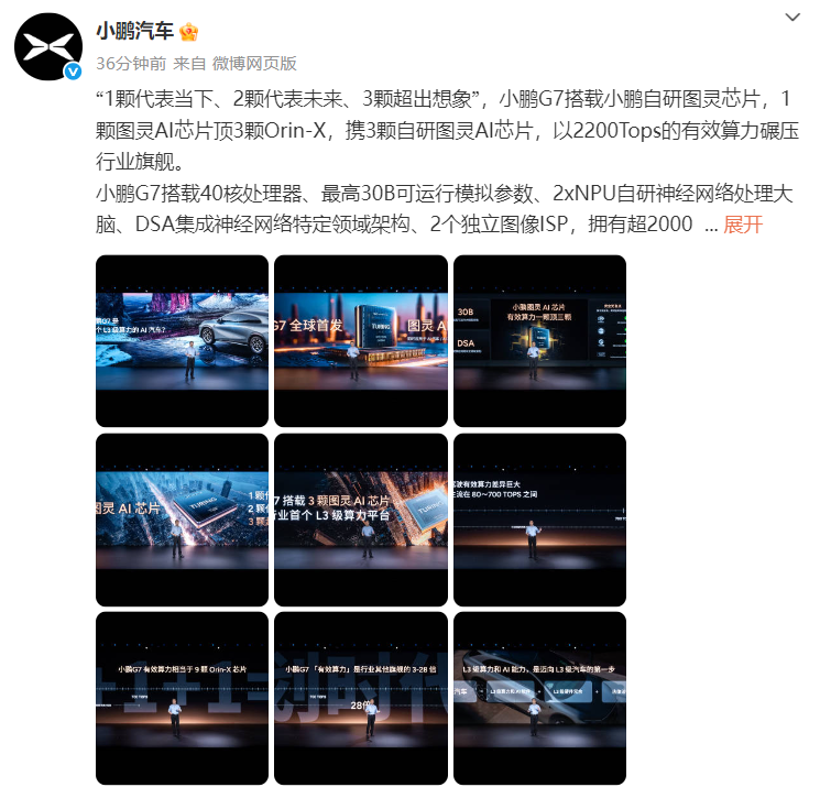 首页 > TMT 9颗Orin-X算力等效?小鹏G7首发3颗图灵AI芯片 发布时间: 2025-06-11 20:55:02 阅 86 6月11日晚,小鹏汽车CEO何小鹏宣布,新车G7行业首发搭载3颗图灵AI芯片,有效算力相当于9颗Orin-X芯片。此外,何小鹏表示,“L3级算力”和“AI能力”,是迈向L3级汽车的第一步,代表汽车已经具备L3级的智能能力和水平,但是需要硬件双冗余和法律法规认证后,才能称得上真正的L3级汽车。公开资料显示,小鹏汽车5月共交付新车33525台,同比增长230%,环比下降4.34%;1-5月累计交付新车16.26万台,同比增长293%。