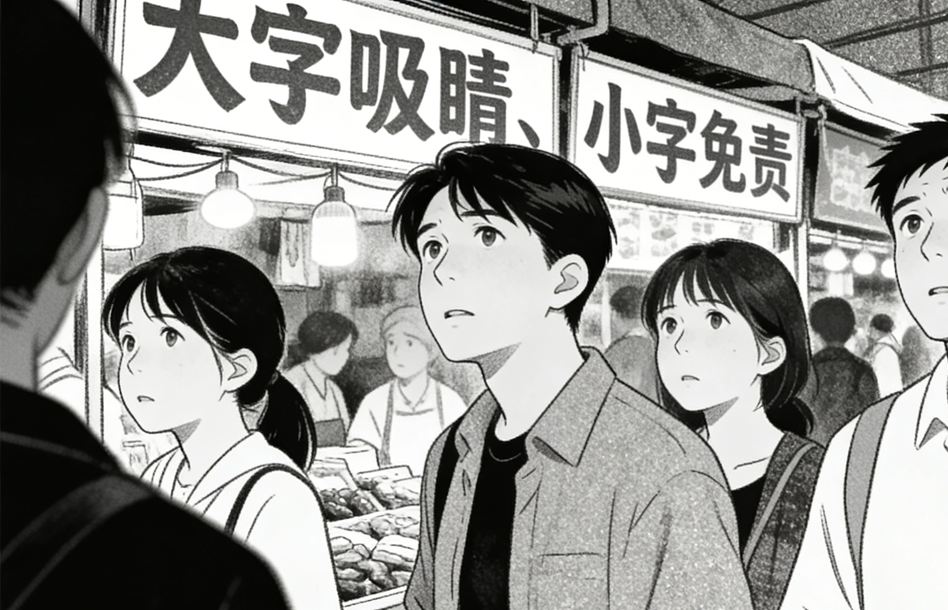 近些年,部分企业在商业宣传中惯用“大字吸睛、小字免责”的手法,通过醒目标语吸引消费者注意,却在不起眼处用细小文字设置种种限制或例外条款。此类行为看似是商家抖的"小机灵",实则是对消费者无诚意可言的做法,从根本上动摇了诚信经营的市场基础。